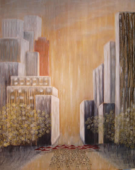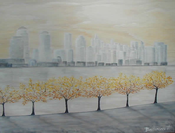 "Heading Downtown" - <i>Sold</i> <i>Sold</i> "Hustle Bustle" - <i>Sold</i> <i>Sold</i> <i>Sold</i> "Rising Moon on Upper East Side" - <i>Sold</i> "Upper East Side Dawn" - <i>Sold</i> "Central Park South" "By Night" "Manhattan Bridge" - <i>Sold</i> "Bridge in the Air" - <i>Sold</i> "Upper East Side Cityscape" "Upper Eastside Cityscape II" "Bryant Park After The Rain" - <i>Sold</i> "Treeline, Skyline" "Wreckage" "Shadow Towers" "Rubble On Greenwich Street" "Clearing Sky on New Rochelle Sound" - <i>Sold</i>